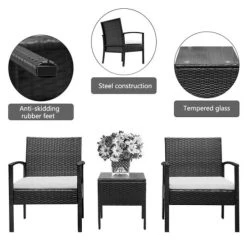 NOTRE SELECTION Salon De Jardin Acier Noir LUZ 2 Chaises 1 Banc Et 1 Table – TE11-SOFA