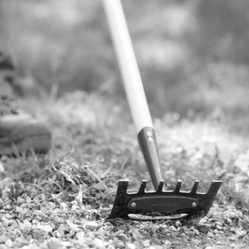 - Une binette et un râteau en un seul outil. Un côté permet de sarcler les mauvaises herbes, 2 faces latérales moins larges sont faites pour casser la croûte du sol, et un côté est cranté pour ramasser les herbes coupées et niveler