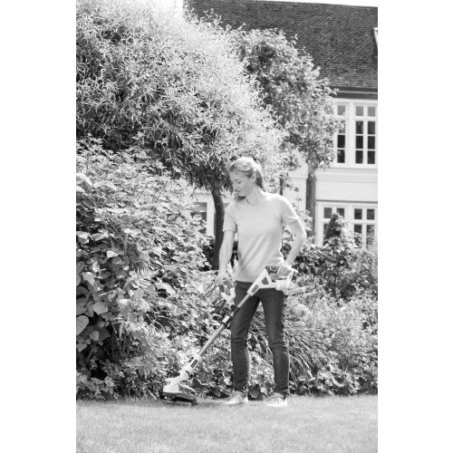 Passage du mode coupe-bordures au mode dresse-bordures par simple rotation de la tête – finitions nettes et précises. Tête de coupe inclinable sur 3 positions pour faciliter l’accès aux zones difficiles.