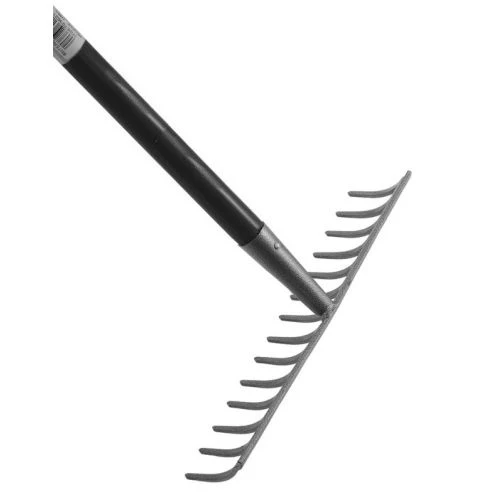 Le râteau à dents cintrées facilite le rassemblement et le ramassage des déchets verts. La manche se fixe à l’outil à partir de la douille conique.