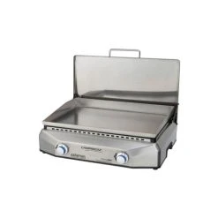 Cette plancha 100 % inox avec son design moderne vous ravira avec surface de cuisson de 60 x 40 cm. Il bénéficie de la technologie Blue Flame avec 6 rampes de bruleurs microflammes pour la réparation de la chaleur de manière homogène. L’inox 304 assure une montée rapide en chaleur de la plaque et permet une baisse instantanée en température dès que vous baissez l’intensité des bruleurs. Pour la sécurité et pour l’entretien de l’appareil, il est équipé d’un couvercle de protection et d’un tasse récupérateur de graisses latérales intégré au châssis.
