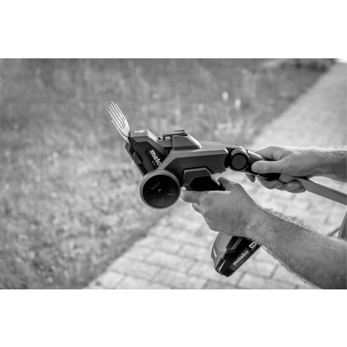 Le sculpte-haie sans-fil SGS 18 LTX Q de Metabo est un appareil 2 en 1 qui permet de sculpter avec précision des haies et pour cisailler les bordures de gazon avec netteté. Doté d’un système Metabo Quick, le changement des deux lames est rapide et sans outil pour un travail flexible. Ce sculpte-haie 18 V permet un meilleur résultat de coupe avec ses lames découpées au laser affûtées au diamant. Il assure également un travail sans fatigue grâce à son faible poids et son fonctionnement silencieux. En outre, pour une meilleure efficacité de travail, cet appareil est doté d’une poignée fine et caoutchoutée pour un guidage confortable et précis.