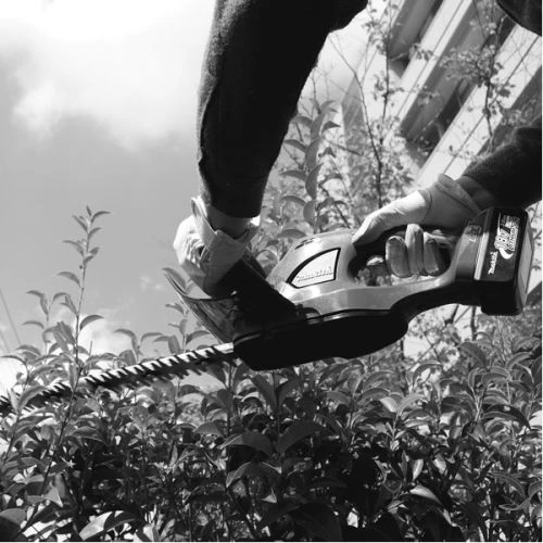 La lame du taille-haie DUH523Z 18 V nu de Makita a été mis sous traitement anti-abrasion pour une coupe nette et pour sa durée de vie. Le taille-haie est doté d’une poignée avant et arrière ergonomique pour une prise en main optimale. Il a également une structure anti-vibrations.