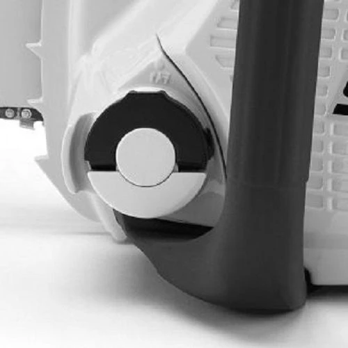 Avec le tendeur de chaîne rapide Stihl breveté, la chaîne peut être tendue sans outil, uniquement avec une molette de réglage, après avoir desserré le capot du pignon de chaîne.