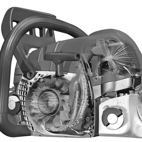 Afin de réduire les vibrations au niveau des poignées, Stihl a mis au point un système antivibratoire (AV) très efficace. Le moteur et le dispositif de coupe sont totalement suspendus des poignées, soit par ressorts ou tampons en élastomère ou encore par une combinaison de ces deux composantes. Il en résulte un grand confort de travail atténuant les risques de défaut de circulation sanguine dans les mains et les bras.